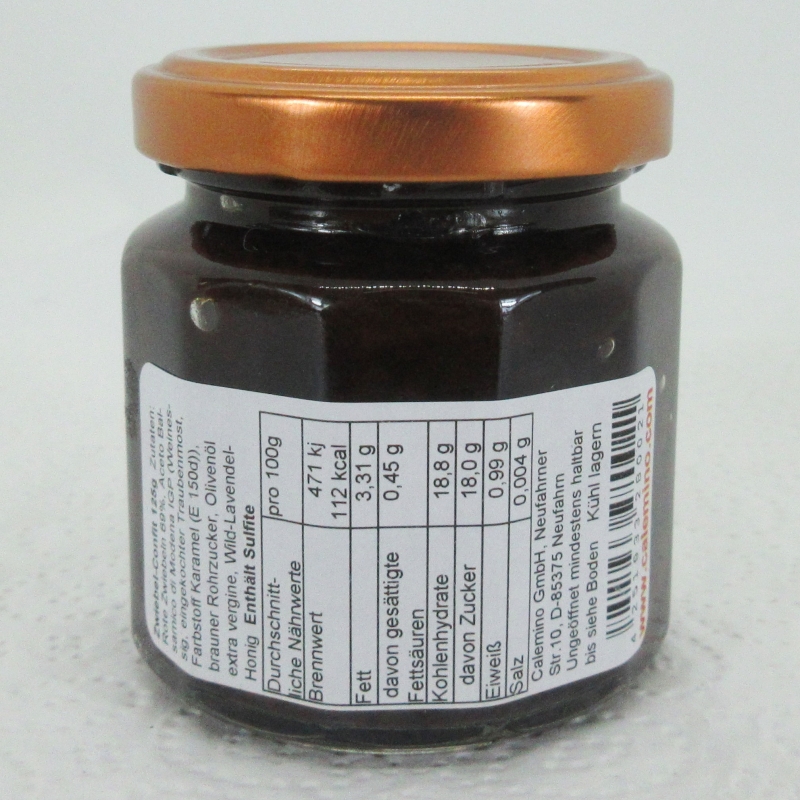 Ingredients: Red onions 69%, Aceto Balsamico di Modena IGP (wine vinegar, cooked grape must, caramel colorant), brown cane sugar, extra virgin olive oil, wild lavender honey.